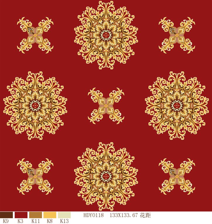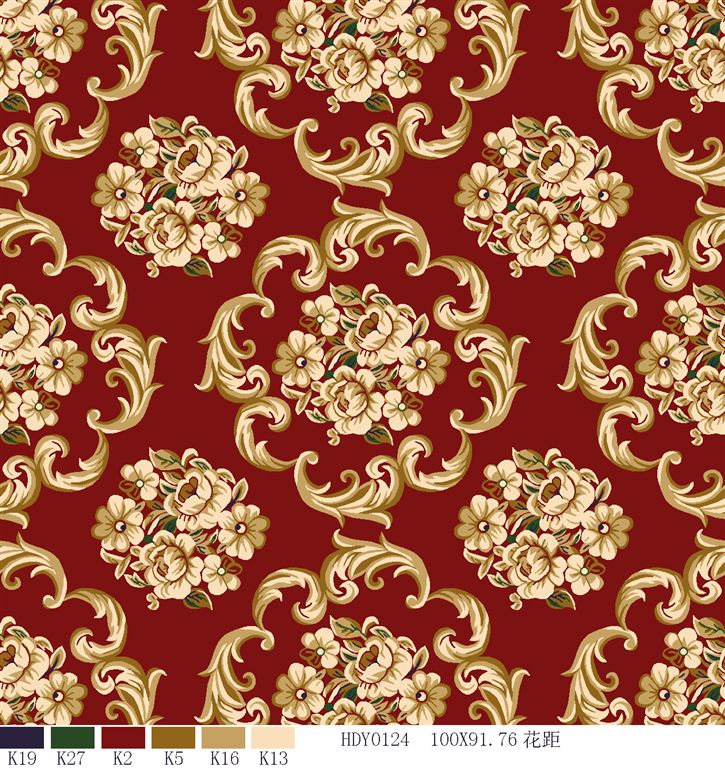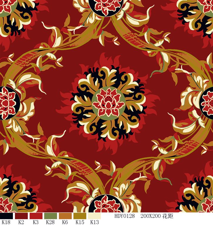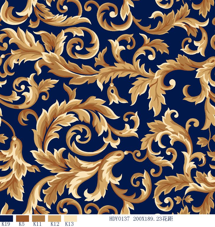 Nylon printed carpets has the advantages in color brightness , good resilience, long usage life, good resilience, easy cleaning and so on. It is favored by high-end hotels.